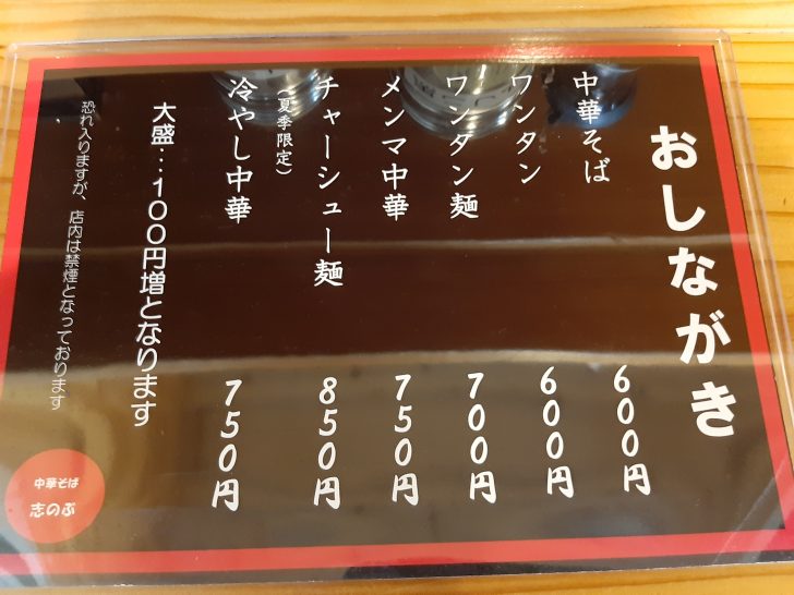 メニューは中華そばのみですね。それにトッピングをしたメニューとなっています。(夏季限定)では、冷やし中華もあります。それにしても、リーズナブルな価格ですね。