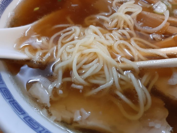 麺は多加水の細ストレート麺です。あまりコシを持たせずにスルスルとしたすすり感を提供していると思いますが、個人的には、もう少しコシがあった方が好みですね。中細のちぢれ麺も合うとおもいますが。