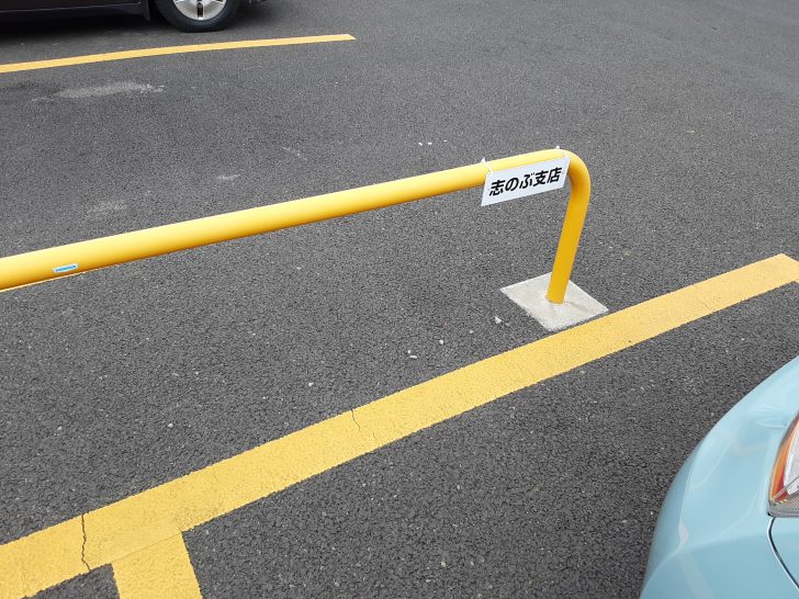 お店の裏側の駐車場には絶対駐車しないで下さいね。ここは『志のぶ支店』の駐車場ではありませんの看板もあります。
