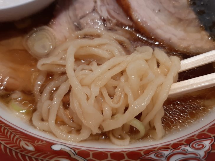 麺は自家製手打ち麺で、超多加水の平打ちちぢれ麺でスープと良く合いますね。