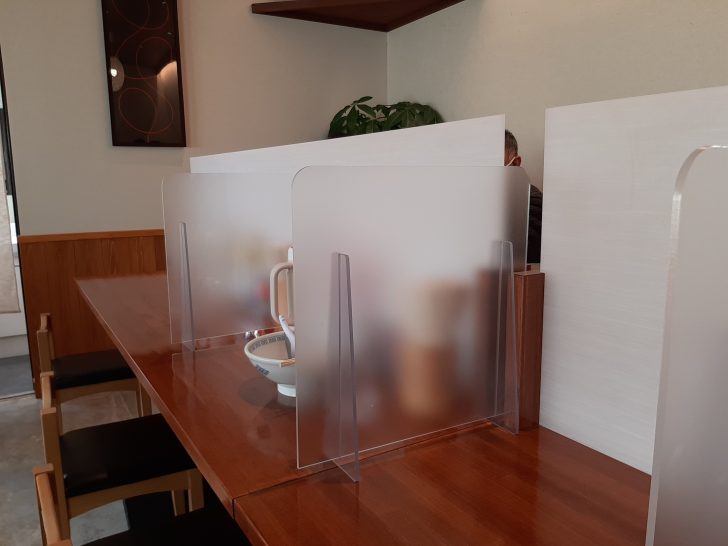 新型コロナ感染防止対策もバッチリですね。カウンターは一席毎に仕切り板が設置されていました。テーブル16席とカウンター12席あります。