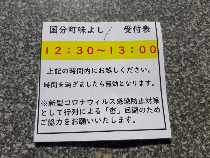 そんなに待ち時間があるとは、思いませんでしたが、整理券を配っていて、1時間30分~2時間後の間に来て下さいとのことでした。一蘭に匹敵する位の凄い人気ですね。これが貰った整理券です。