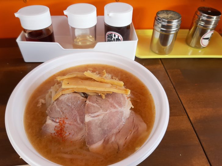 「味噌チャーシュー」を注文しようと思ったのですが、お店の方が「かなりボリュームありますよ」とのことだったので、「味噌チャーシュー」をやめて「味噌ラーメン」+トッピング「チャーシュー」2枚を注文しました。