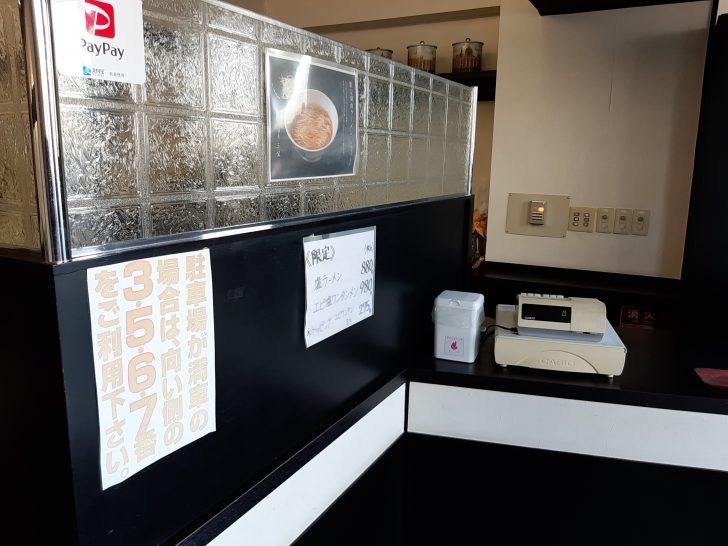 カウンターは7席あったのですが、新型コロナ感染防止の為に5席に減らして営業しています。テーブル席も2つあります。
