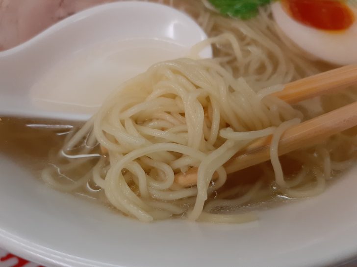 今回は、細麺を選択しました。思った以上に細いストレート麺ですが、コシもあり食感も良いです。このスープには低加水の細麺が合うんですかね。多加水の太麺も食べてみたいと思いますね。