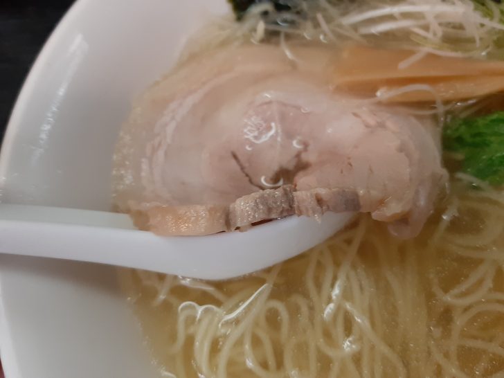 豚バラチャーシューは、1枚ですが、大きめで厚さもあります。本当に柔らかくトロトロで食感も最高で美味しいです。