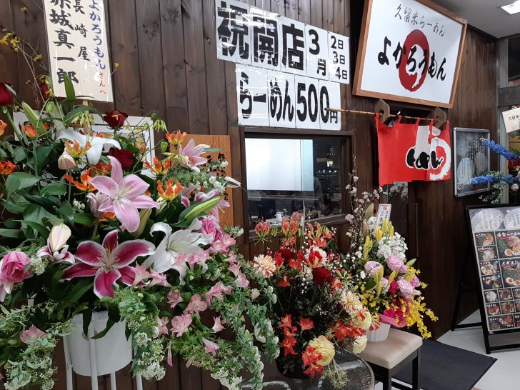 この日は3月3日で、開店2日目の18:30です。開店祝いのお花がたくさん飾ってありました。