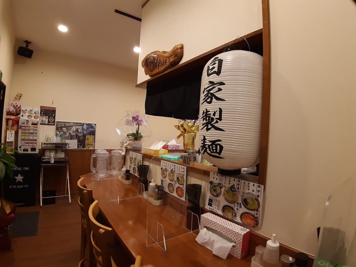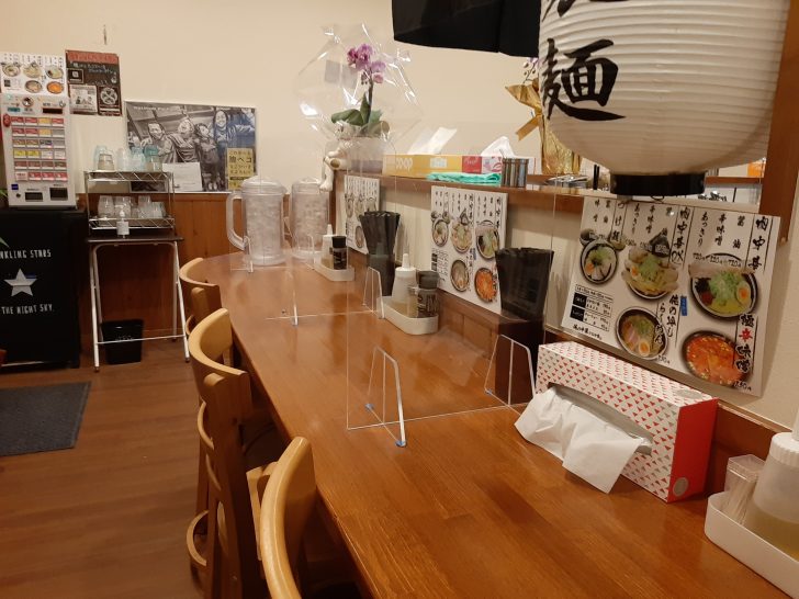 カウンターは隣席との仕切板が設置されていました。コロナ感染防止対策も万全ですね。