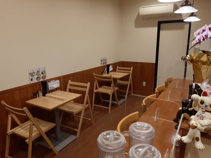 テーブル席は2人掛けが2つあります。こちらも仕切板が設置されていました。