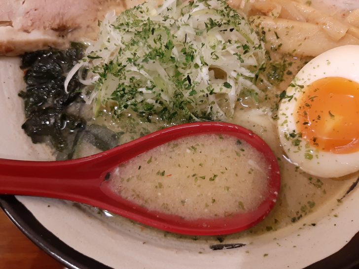 まずは辛味噌を入れずにスープを頂きました。白味噌の甘みとコク、野菜の旨味が動物系スープと合わさり、何とも言えない美味しさです。