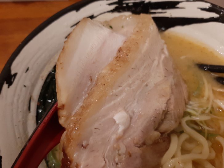 チャーシューは大きいだけでなく分厚いんです。そしてすごく柔らかくて、肉感もあって食べ応え抜群でした。