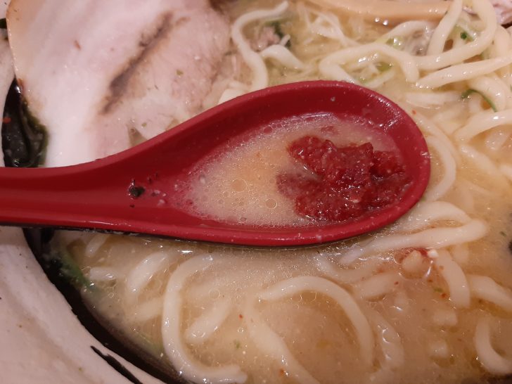 辛味噌は別皿で提供される方式でした。お好みでスープに溶かして食べ下さいとのアナウンスがありました。