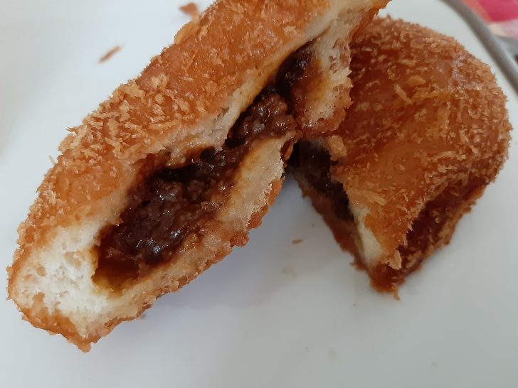 花椒やシナモン、クローブといったスパイスを後入れし、香りにも食欲をそそるという。ドーナツ生地には国産小麦粉を配合し、“もっちり食感の食べ応えのある”食感を実現した。-食品産業新聞社ニュースより引用ー