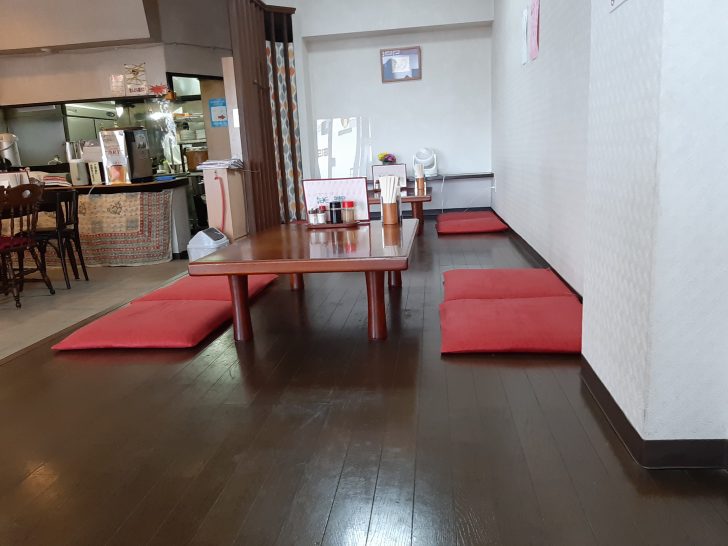 小上がり席もひとつ減らして3つあります。間隔の狭い席は仕切りがありますね。