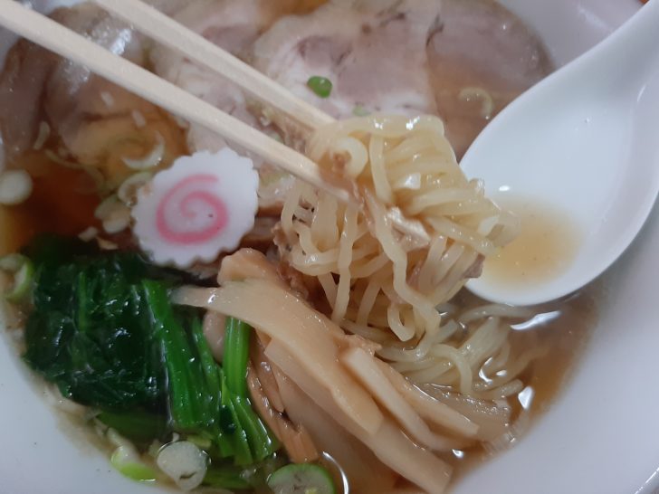 麺は中細麺ですね。麺については、ラーメン専門店の自家製麺などと比べてしまうと、少し劣りますね。