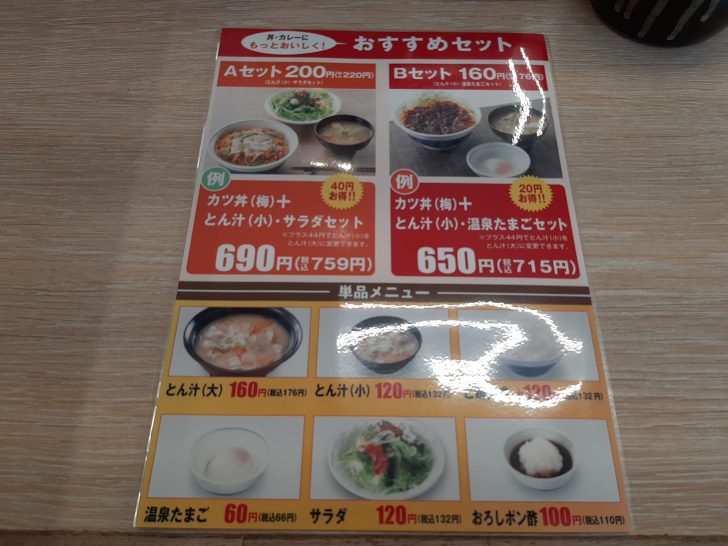 とんかつ専門店『かつや』仙台泉インター店のメニュー