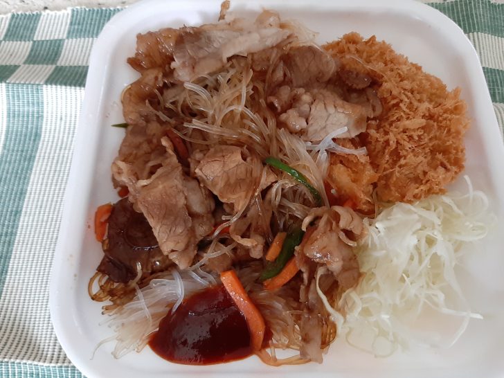 私は「牛春雨プルコギとメンチカツの合い盛り丼」の店内飲食しました。また、かみさんが出かけていて、昼過ぎに帰ってくるので、持ち帰りの弁当を買ってきて欲しいということだったので、持ち帰りの弁当を注文しました。