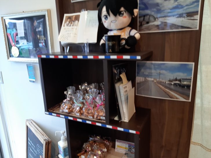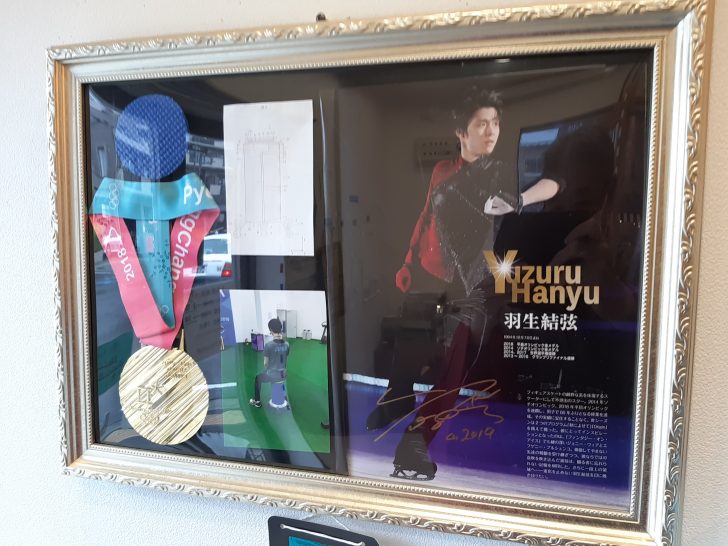 お店はそんなに広くはないですが、店内には、羽生結弦選手の関連グッズが店内に展示されていました。繋がりがあるようです。