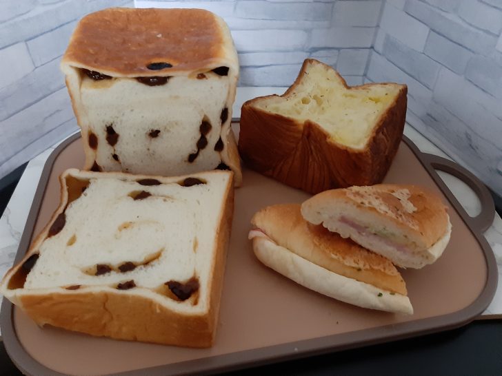 購入したパンはこんな感じです。食べた感想ですが、杜のぶどう食ぱんは、ふわふわのパンで、ミルクパンのコクがあり、レーズンもたっぷり入っており美味しかったですね。デニッシュ食パンもおすすめと聞いたので購入しました。美味しいのですが、私は京都のデニッシュパン専門店「ボロニヤ」の方が断然美味しいと思いました。仙台にもお店があるので、デニッシュ食パンはそちらで時々購入しています。