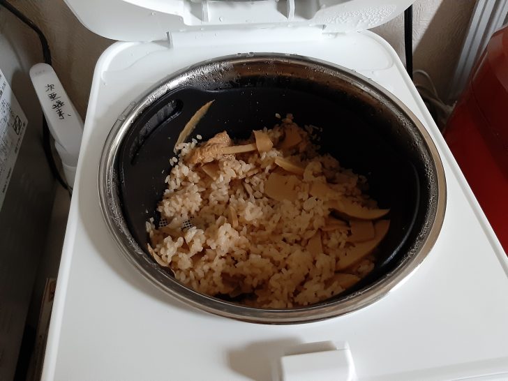 普通の白いご飯以外に筍の炊き込みご飯も炊いてみましたが、こちらも美味しく頂けました。