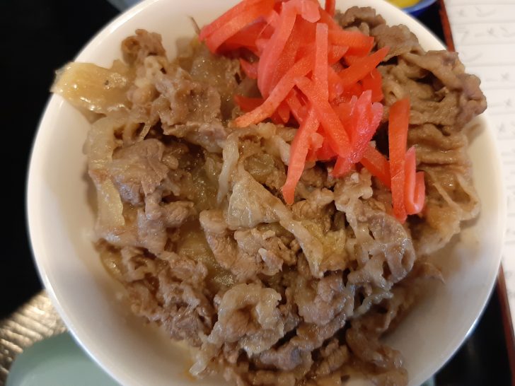 ラーメン定食には、牛丼が付いています。牛肉もたっぷり入っていて、すごく美味しいですね。
