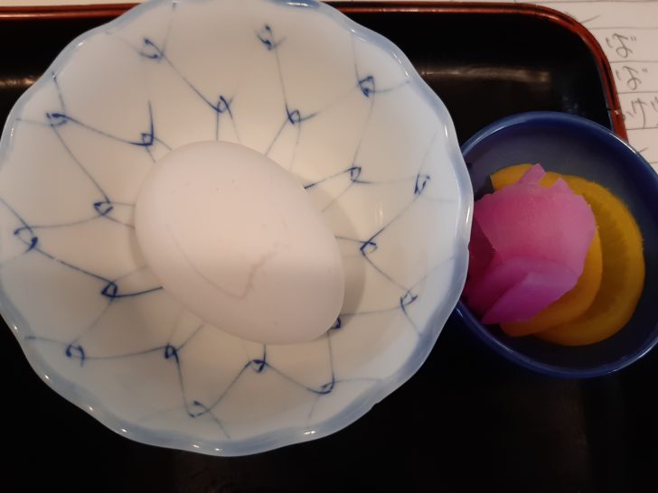 牛丼用に生卵と漬物も付いています。