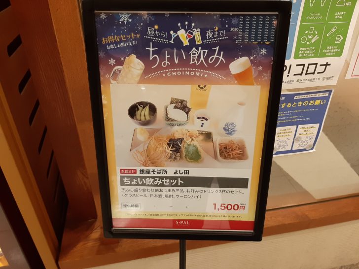 ちょい飲みセットの看板が、店頭に出ていました。提供時間は、夜だけでなく、昼から提供されているようです。