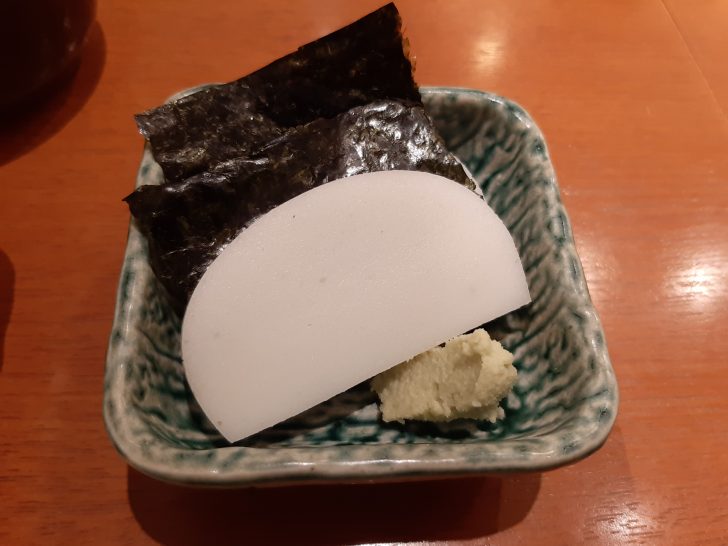 これが板わさですが、蒲鉾自体がとっても旨いし、海苔が挟んであるのも良いですね。わさびも本わさび?のようで旨かったです。