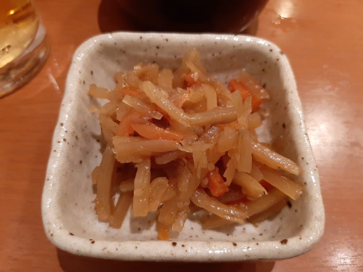 きんぴらごぼうも甘めの味付けでお酒のあてとしては、とっても旨いですね。