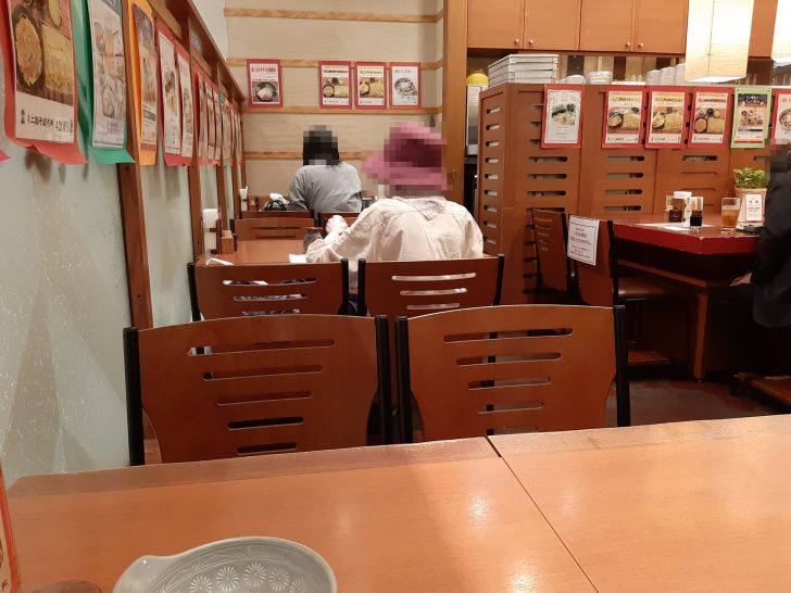 コロナの感染防止の為、カウンター席は、一席毎に間隔を空けて座るようになっていますね。