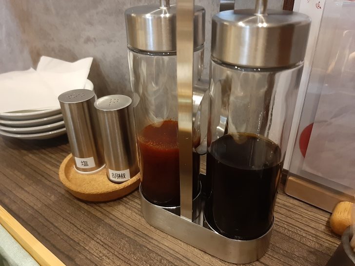 卓上調味料は、塩、胡椒、焼肉のたれ2種類。店員さんにたれの内容を聞きましたが、分からないととのこと。確認してきますかと言われましたが、断りました。