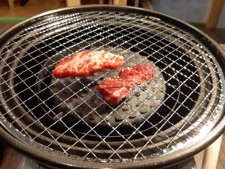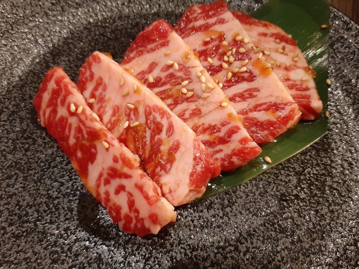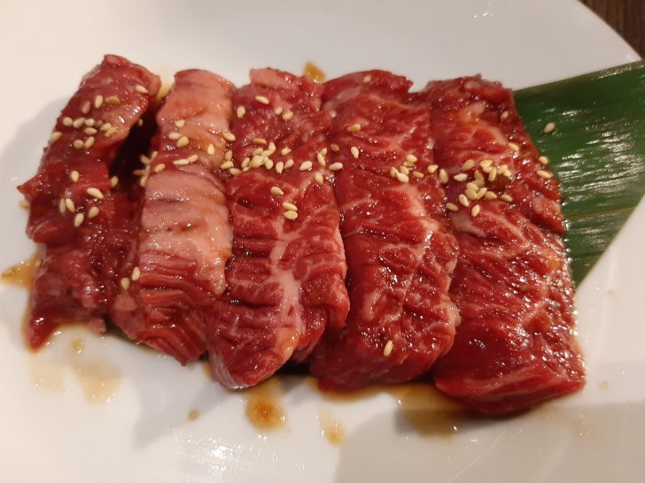 左側が牛ハラミで右側が牛カルビです。1人前5切れで提供されるようになっているようです。