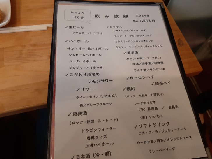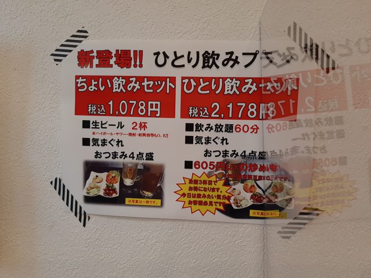 ひとり飲みのプランが、充実していて、2種類あります。本当にサク飲みの場合は、ちょい飲みセット、ドリンクを3杯以上飲む場合は、ひとり飲みセットがお得ですね。