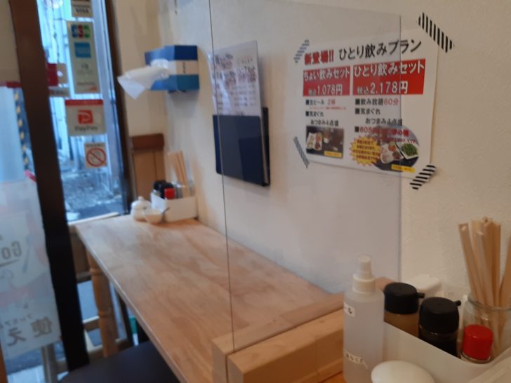 カウンターは2席しかありませんが、隣席とは、仕切板で仕切られています。