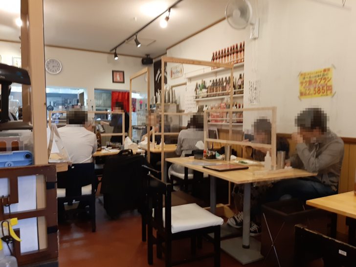 テーブル席もコロナ感染防止対策は万全ですね。安心して飲食できます。