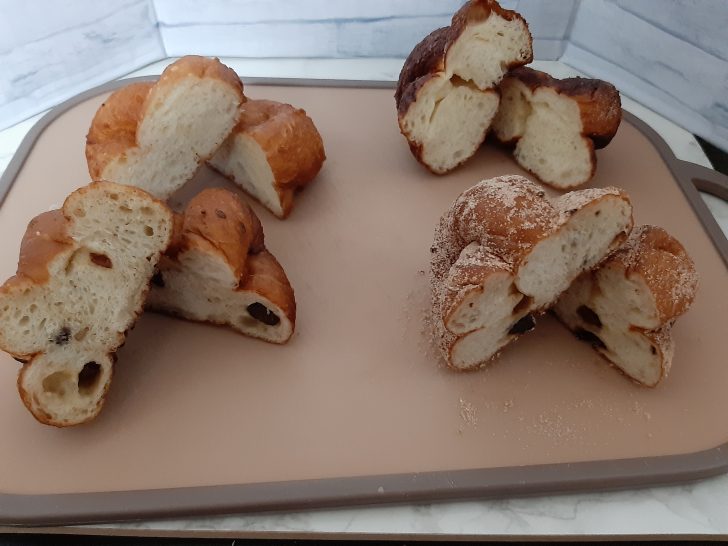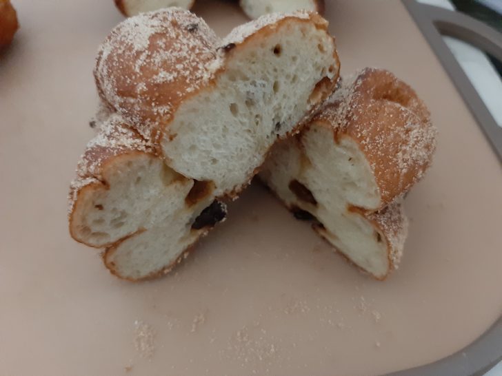 「レーズンシナモン」は、レーズンを練り込んだものに、シナモンシュガーを掛けたもので、両方の甘さがあって、おやつとしては一番美味しいかも知れませんね。