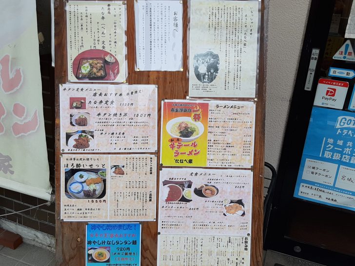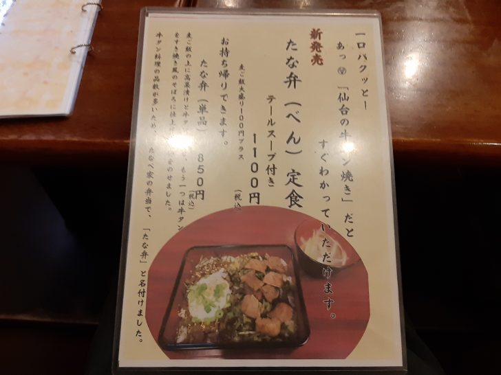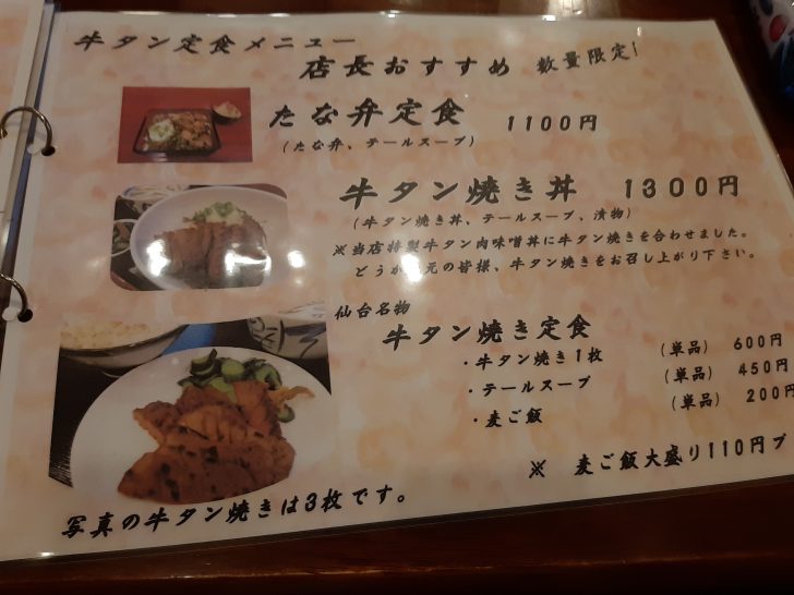 牛タンがメインのお店なので、当然のことながら、牛タン焼き、牛タンカレー、牛タンシチューなどのメニューが多いのですが、ラーメン店?と思えるほど、ラーメンメニューがあります。