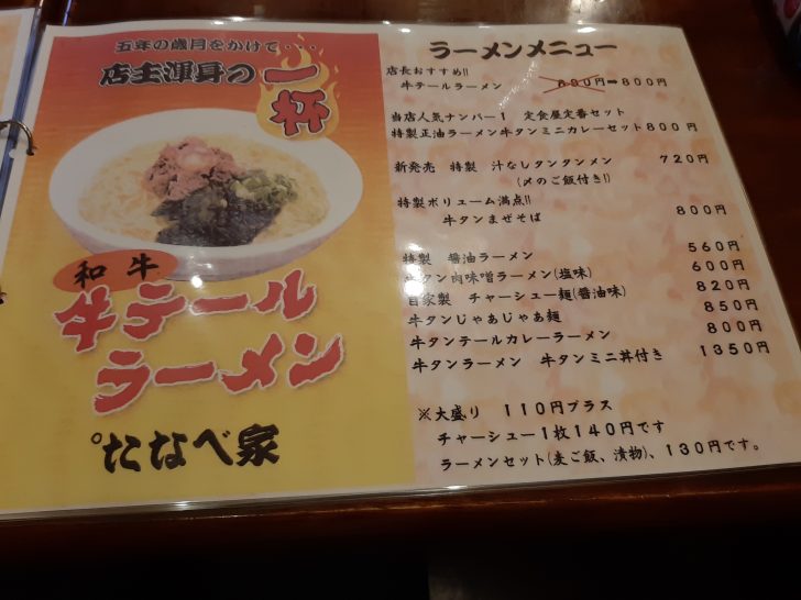 牛タンの『たなべ家』に行ってちょい吞みと人気の「牛テールラーメン」を頂いてきましたので紹介します。