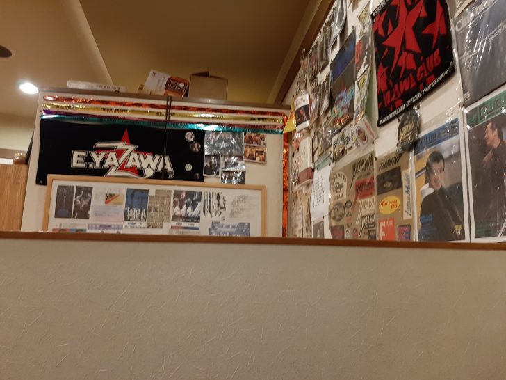 店内は店主さんが大ファンの矢沢永吉の写真、ポスター、グッズなどが、たくさん掲示されています。