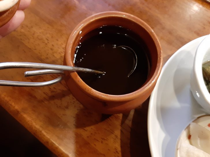 壺に入った串カツの専用ソースも提供されました。