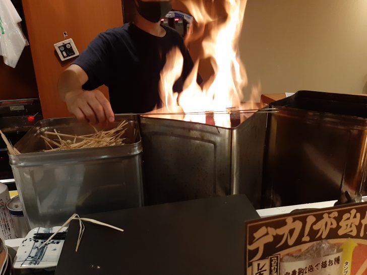 カウンターの処に、ワラの入った一斗缶が置いてあり、ワラ焼きを見ることができました。
