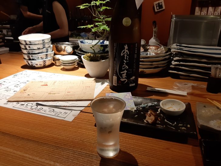 最後に日本酒(あたごのまつ)を頼んで、飲み放題は終了です。ちょっと飲み過ぎました。