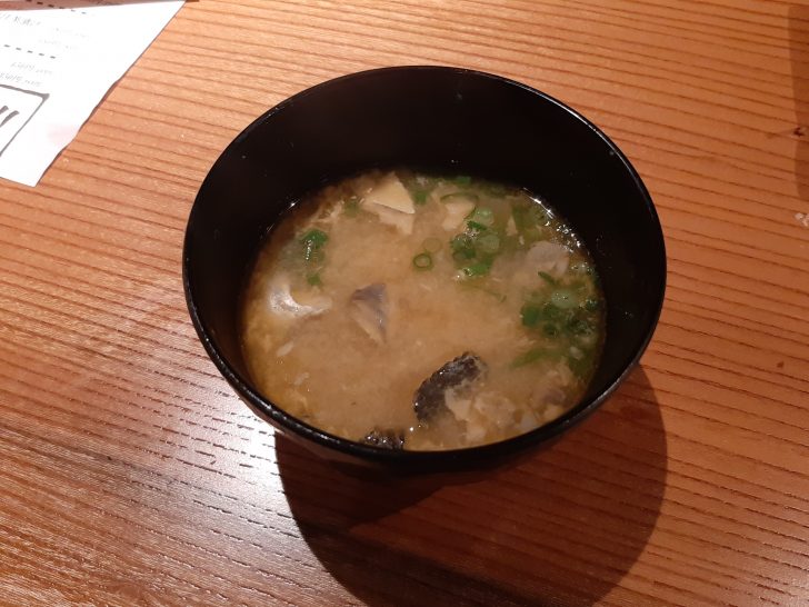 最後にサービスであら汁が提供されました。これも美味しかったですね。新鮮な魚のあらを使っているので、良い出汁が出ているからでしょうね。