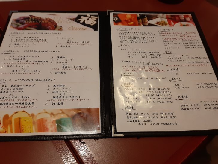 こちらは、コース料理やドリンクのメニュ-ですね。