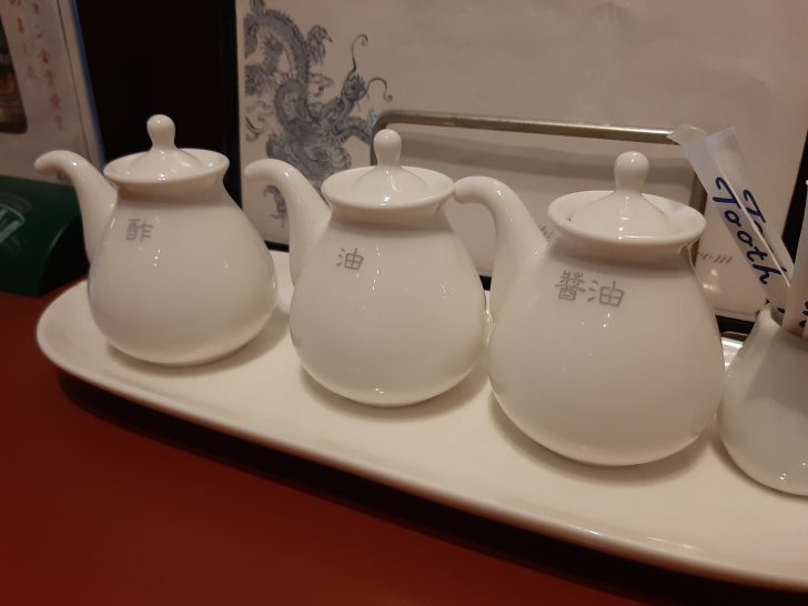 卓上調味料は、酢、油、醤油ですね。