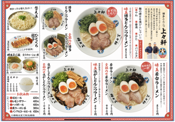博多とんこつ『上々軒』は、 焼きとん大国などを展開している、株式会社エムシスが、新しく立ち上げた新業態のとんこつラーメン店です。