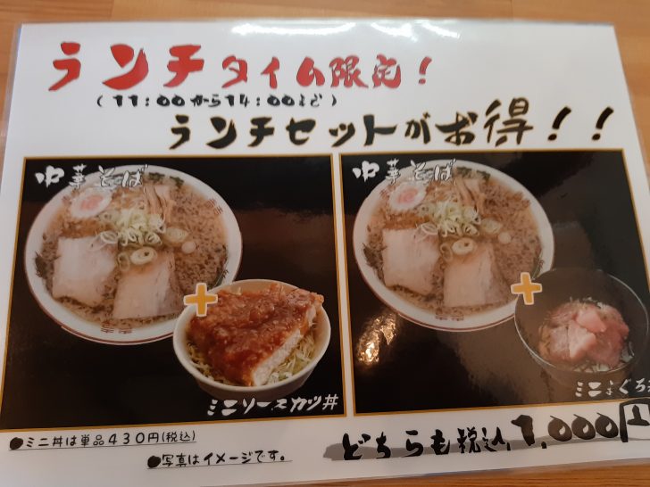 ランチタイム限定の中華そばとミニソースカツ丼セットが、美味しくてお得のようです。カツ丼のカツが分厚くて食べ応えがあるようです。隣の人も注文していましたが、美味しそうでした。