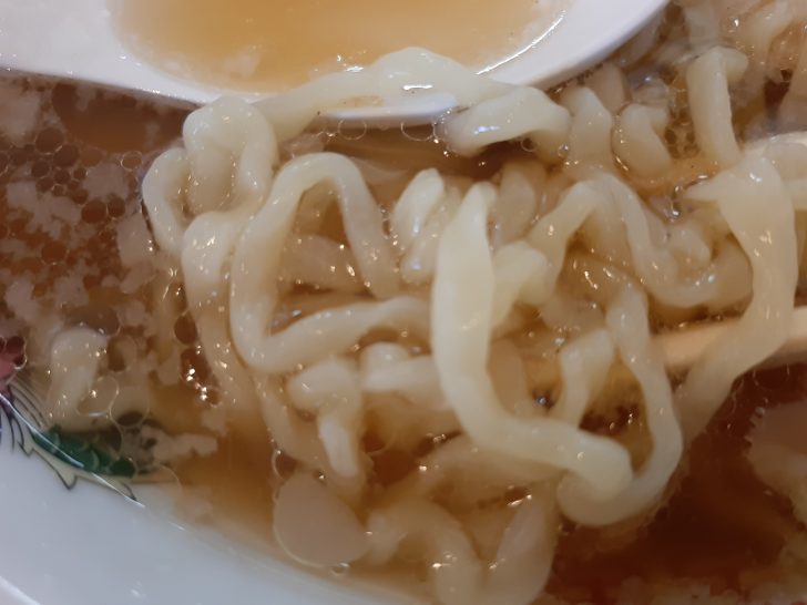 麺は、平打ちの縮れ麺で、コシもあり食感も良く美味しいですね。