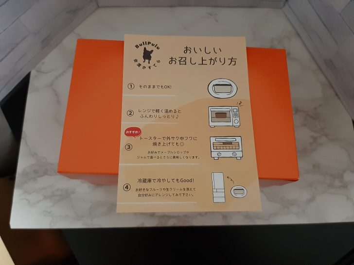 おいしい食べ方のガイドが入っていました。レンジで温めたり、トースターで焼いたり、冷蔵庫で冷やしても美味しいようです。