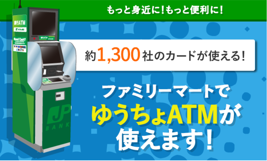 現状、ファミリーマートに設置されているゆうちょ小型ATMを使用するメリットは次の通りで、とってもお得なんです。